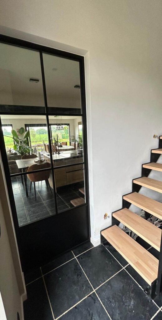 Onze op maat gemaakte stalen panelen zijn meer dan een visueel statement; ze zijn een symbool van verfijning en een meesterwerk van vakmanschap. Zonder de noodzaak van scharnieren of handgrepen, bieden deze panelen een naadloze overgang tussen ruimtes, terwijl ze toch een onmiskenbare industriële flair behouden.